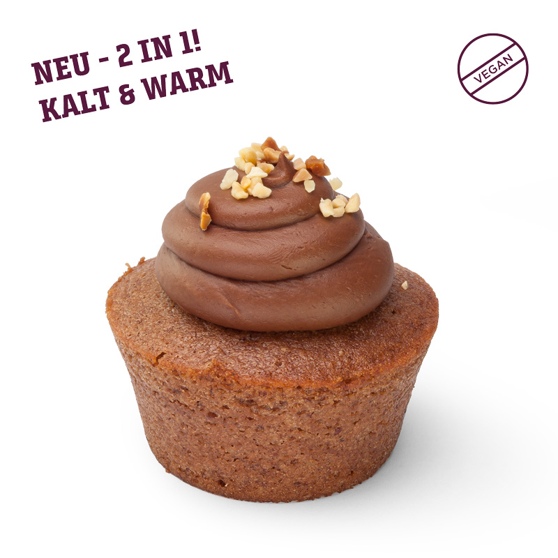 Saftiges veganes Nougattörtchen, mit einer Haube aus einer dunklen Nougatganache, die sich beim Erwärmen langsam über das saftige Soufflé ergießt. Auch kalt verwendbar.
